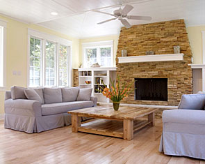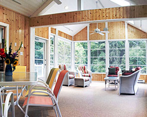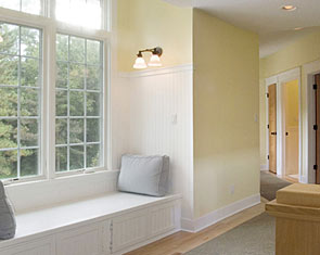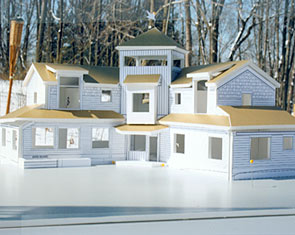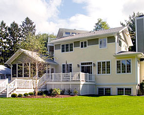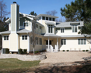 Multi-generational home with several different customized family gathering places and reading nooks; connected by walk-way to existing, vintage cottage also owned by same family.