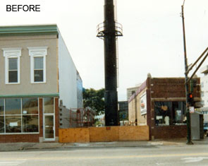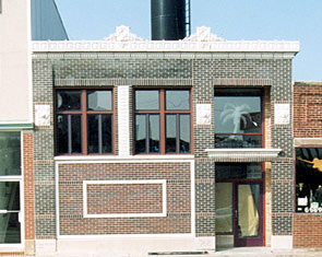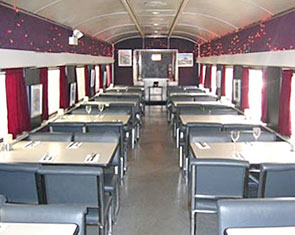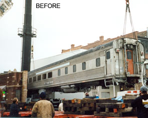 New building constructed from old Terra Cotta parts reclaimed from neighboring, torn down building. 1940’s, vintage, train dining car, transported form La Mirada, California, to its current location, sandwiched in between two existing circa 1900 buildings and wrapped around billboard sign pole, converted to Silver Palm Train Car Restaurant.